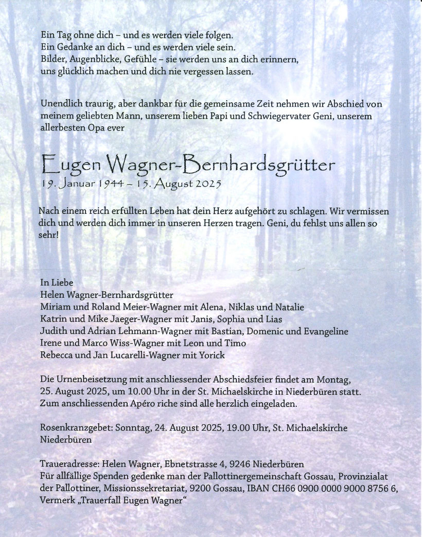 Nicht vergessen am Samstag 14. September ist unsere Beständeschau bei der Firma Schatt in Oberwangen